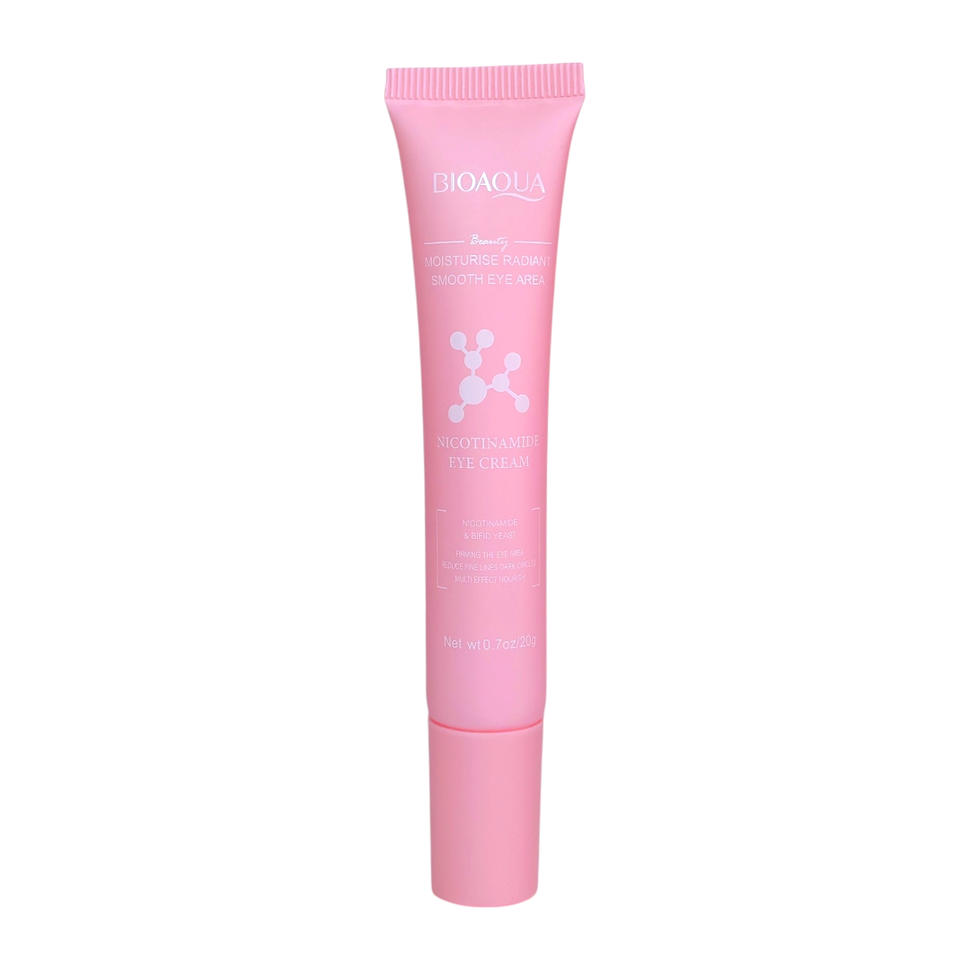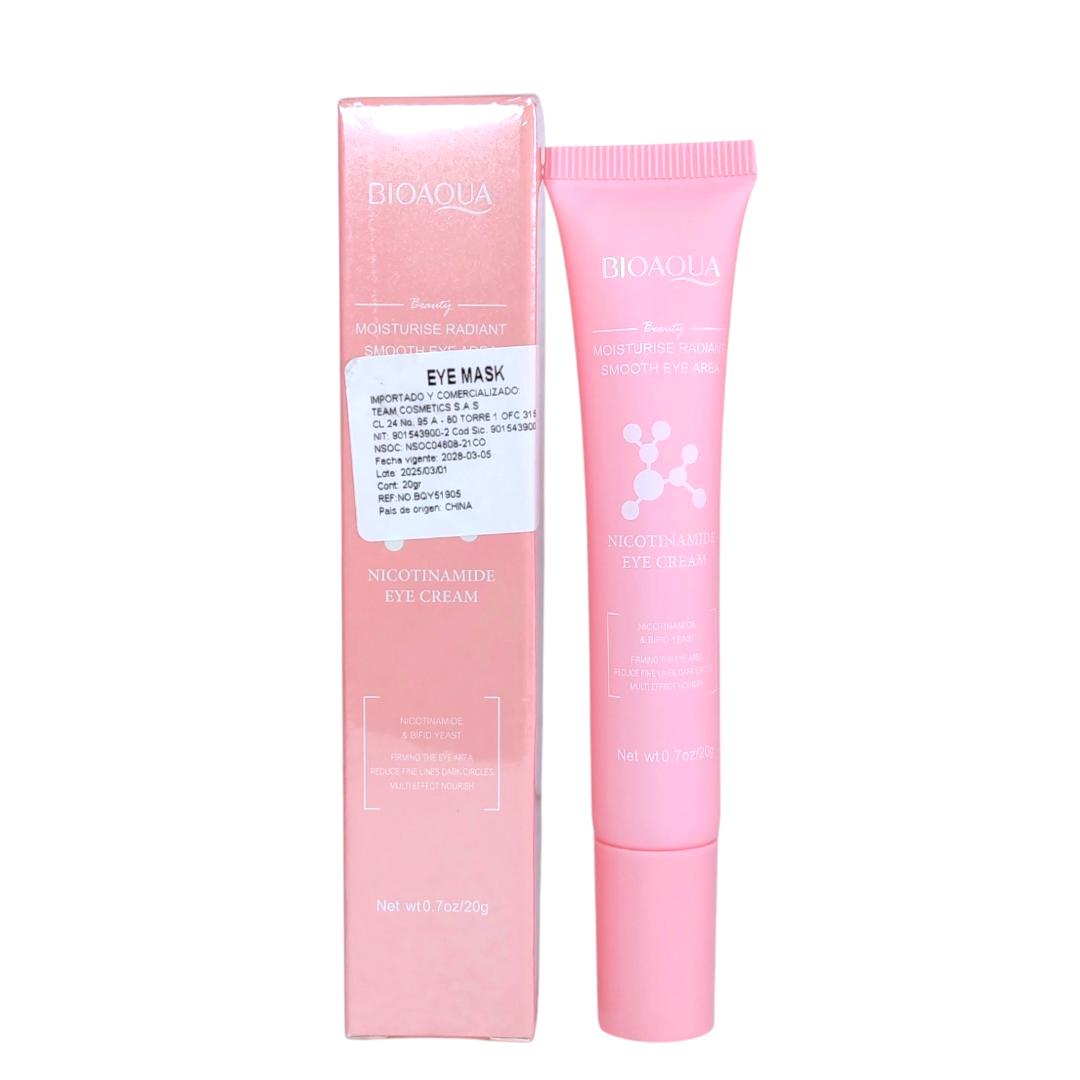 El Contorno de Ojos con Niacinamida BIOAQUA es un tratamiento específico para el área delicada de los ojos, formulado con niacinamida (también conocida como vitamina B3) que se ha ganado su popularidad por sus beneficios rejuvenecedores y calmantes. Este producto está diseñado para reducir ojeras, hinchazón y signos de envejecimiento, proporcionando hidratación y un aspecto más descansado y luminoso alrededor de los ojos.