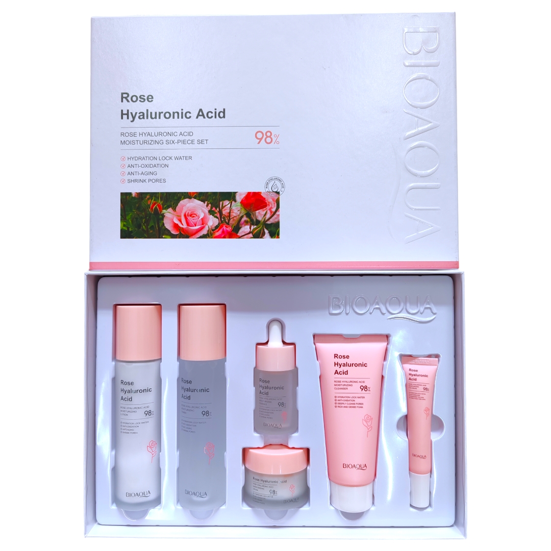 ¡Luce una piel hidratada con nuestro Kit X6 Rutina de Rosas con Ácido Hialurónico Bioaqua! A base de ingredientes naturales que hidratan, revitalizan y renuevan tu piel. Combina las propiedades rejuvenecedoras del extracto de rosas con el poder hidratante del ácido hialurónico, para brindarte un cuidado completo de la piel.